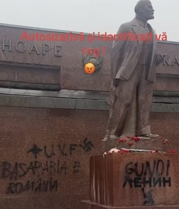 Monumentul lui Vladimir Lenin, amplasat pe teritoriul complexului Moldexpo din Chișinău, a fost vandalizat în noaptea trecută. Persoane necunoscute au desenat pe acesta un simbol asociat ideologiei naziste și au scris mesajul „Basarabia este România”.