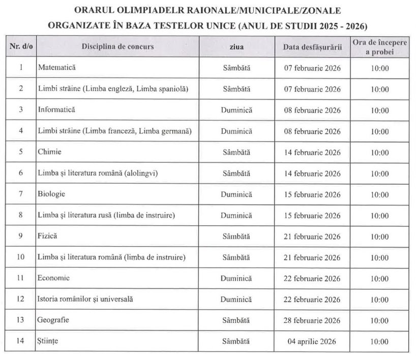 Calendarul competițiilor rămâne, în rest, neschimbat, iar ultima olimpiadă, cea la științe, este programată pentru data de 4 aprilie.
